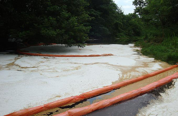 直到晚上11点多钟,飘浮河面已吸附饱的十几吨惰性吸油颗粒剂,终于被用吸油拖栏围拢、导流引入临时储油池。此时,几十名抢险队员们已经体力极度透支,连爬上岸的力气都没有了。但是当晚的工作还没结束,还必须在河道上重新撒布一层惰性吸油颗粒剂,固定吸油拖拦。所幸的是那场令人胆战心惊的大雨,与抢险现场擦肩而过。